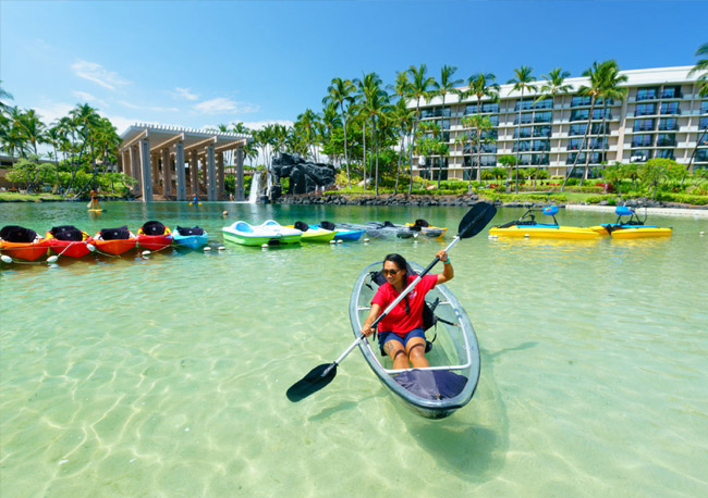 広大なヒルトン・ワイコロア・ビレッジでは、野生動物やアート鑑賞、ショッピングやグルメなどの楽しみも。トラムやボートでリゾート内を巡ることもできます。